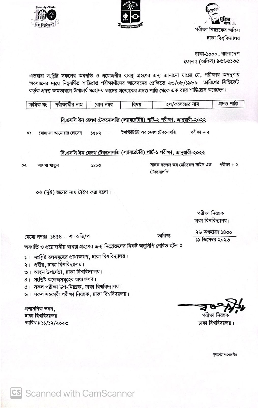 শাস্তি হ্রাস, ঢাকা বিশ্ববিদ্যালয়।